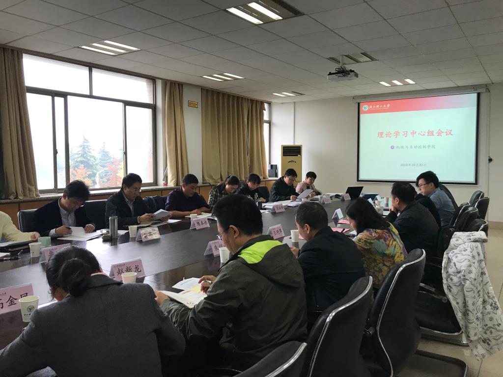 10月22日上午,机械与自动控制学院党委理论学习中心组学习会在学院会议室召开。参加此次学习会的有学院党委书记潘海鹏、院长兼副书记陈本永、副书记苏丽辉、副院长俞高红、副院长胡明、副院长鲁玉军、党委委员吴震宇以及各系、中心、办公室主任、教工党支部书记等。会议由潘海鹏主持。