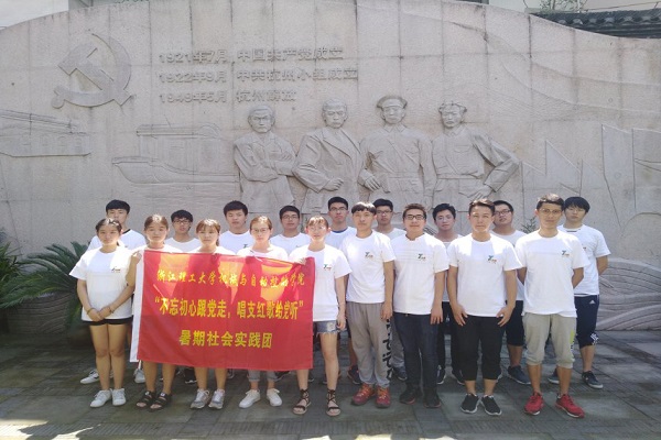 为庆祝中国共产党建党九十七周年并响应党的十九大报告中提出的“继承革命文化,发展社会主义先进文化”的号召,机械与自动控制学院赴杭州嘉兴井冈山等地传播调研红色文化暑期社会实践小分队以“不忘初心跟党走,红歌唱响新时代”为主题开展暑期社会实践。实践小分队在7月10日,出发参观了中共杭州小组纪念馆。