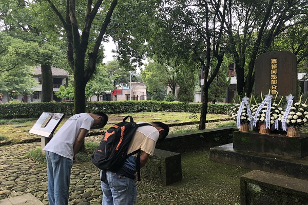 游览过中国工农红军挺进师陈列馆,成员们了解了挺进师的光荣事迹与中华人民共和国十大将领之首、挺进师师长粟裕为抗战做出的巨大贡献。随后他们自发地在烈士陵园进行三分钟默哀仪式,并对粟裕师长进行了悼念。