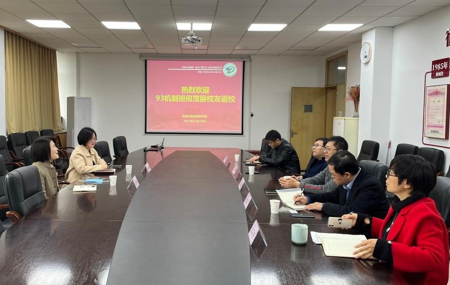 11月29日上午,机械与自动控制学院1993级机制专业校友、杭州恒胜电子科技有限公司总经理何茂丽回访母校。学院党委书记苏志俭出席会议,副院长吴震宇、党委副书记王吴芳、校招生与就业指导处副处长丁宁、服装学院党委副书记方水明、学院校友联络中心主任高君参加座谈。