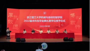 6月14日,机械与自动控制学院2022届本科生毕业典礼暨学位授予仪式在国际会展中心举行。学院党委书记苏志俭、院长李秦川、学院95级校友、杭州锐冠科技有限公司董事长陈小兵、学院副院长鲁玉军、吴震宇、潘骏及各系主任、各办公室、教师代表、毕业班班主任、辅导员出席此次典礼,与全体2022届本科毕业生共同见证这一青春的难忘时刻。典礼由学院党委副书记陆秋萍主持。