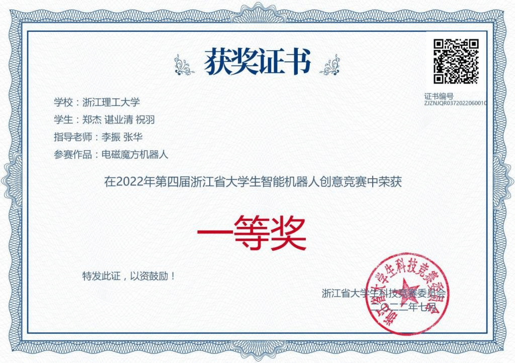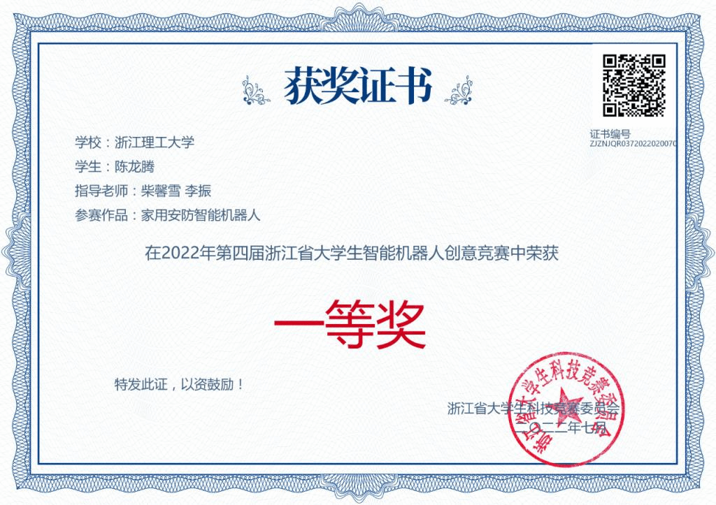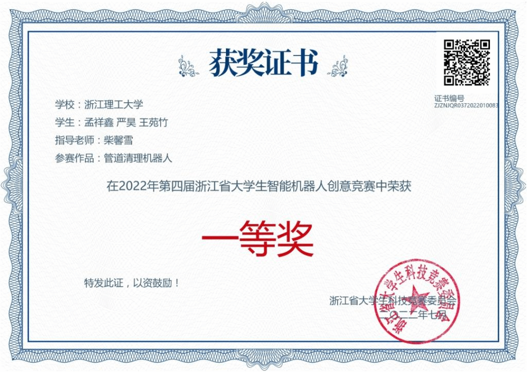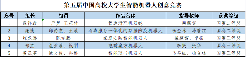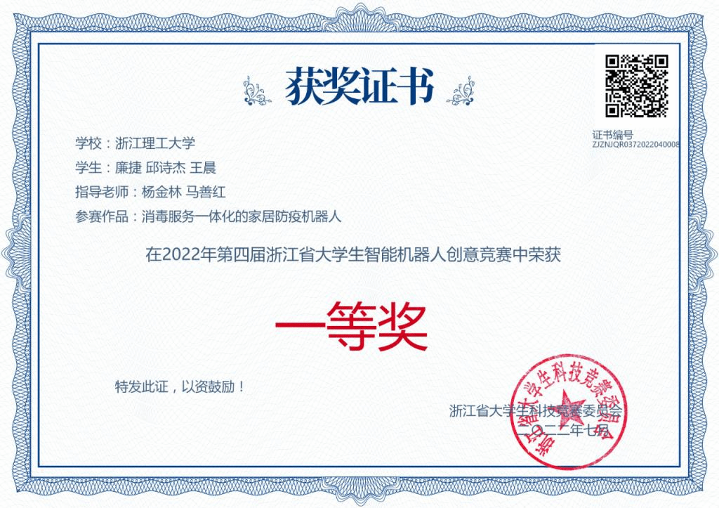 本次大赛共有省内55所高校,840支队伍,近3000名师生参赛,其中本科组37所高校626支队伍,经过评审,共评选出本科组浙江省一等奖49项、二等奖94项、三等奖163项。我校共有16支队伍获奖,其中kaiyun开云官网学子孟祥鑫、严昊、王苑竹的“管道清理机器人”,廉捷、邱诗杰、王晨的“消毒服务一体化的家居防疫机器人”,陈龙腾的“家庭安防智能机器人”,郑杰、谌业清、祝羽的“电磁魔方机器人”获得省赛一等奖。