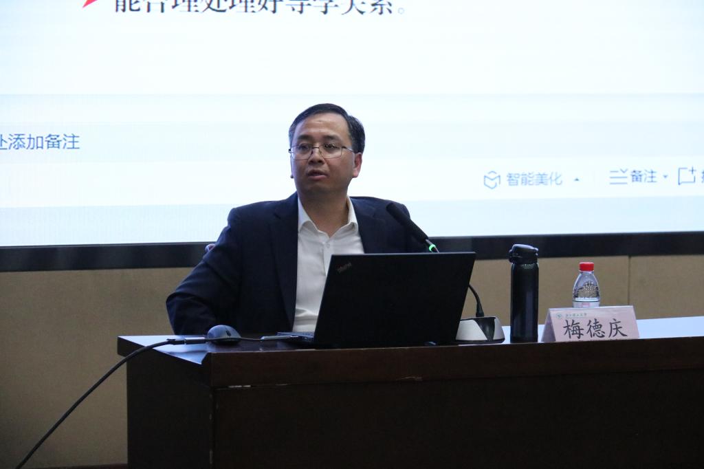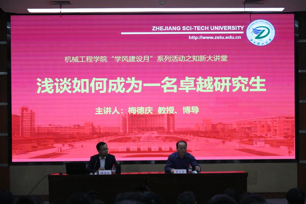为进一步提高学院研究生生涯规划的意识与能力,营造奋进向上的育人环境,提高学院人才培养质量,11月13日下午,kaiyun开云官方网站学风建设月之“知新大讲堂”在行政楼二楼报告厅举办。浙江大学海洋学院常务副院长、党委副书记、博士生导师梅德庆教授应邀担任本次主讲人,为现场200余名师生带来了一场题为《勇于创新 精益求精 追求卓越——浅谈如何成为一名卓越研究生》的专题报告。学院副院长鲁玉军、党委副书记陆秋萍参加。