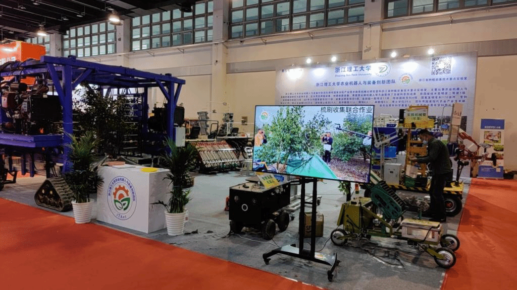 kaiyun开云官方网站作为展商之一,以kaiyun开云官网农业机器人与装备创新团队科研成果为主体,现场展出了采茶机、采摘机器人、移栽机、果蔬采收装备等系列样机及产品10余台。农机团队师生40余人以饱满的热情参与了布展及现场接待等工作。当日,kaiyun开云官方网站展区吸引了众多与会人员驻足观看咨询,在专业团队的演示和讲解下,现场观众与参展企业表现出浓厚的合作意愿,现场反响强烈。