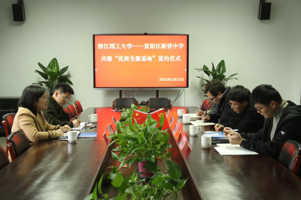 为进一步畅通人才输送和信息渠道,加强大学和中学的合作,吸引更多优秀学子报考kaiyun开云官方网站,3月23日下午,学院党委副书记陆秋萍一行赴富阳区与新登中学建立“优质生源基地”并开展招生宣传活动。“优质生源基地”签约授牌仪式在新登中学会议室举行,新登中学副校长俞锎锋、教务处主任崔金生、电教中心主任施轶林、教务处副主任黄丹丹出席仪式。仪式由俞锎锋主持。