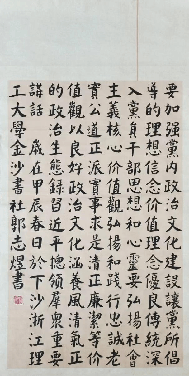 此次活动得到了全院师生的积极响应,他们用手中的笔和心中的炽热爱国情书写出了对祖国的深深热爱和崇高敬意。一幅幅书法作品,刚劲有力,如挺拔的青松,展现出坚定的爱国信念;或婉转流畅,似灵动的溪水,流淌着对祖国的深情眷恋。
