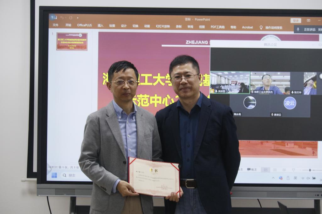 会议第一阶段,由学院党委书记苏志俭致欢迎辞,并向各位专家介绍了示范中心的基本情况。苏书记宣读了示范中心新一届教学指导委员会成立文件,宣布聘任吴昌林教授为教指委主任委员,顾大强教授为副主任委员,田杰教授、刘会霞教授、薛凌云教授、隋永枫教授、张建新教授为委员,并为新一届教学指导委员会成员颁发了聘书。
